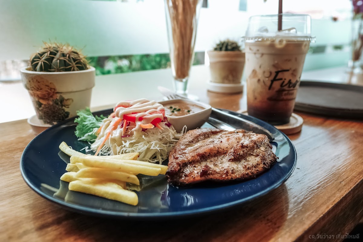 The cafe features a well-designed air-conditioned interior, providing a cool retreat from the heat of Thailand while also offering charming outdoor seating for those who enjoy a little sunshine. Reviewers have praised the delightful ambiance, enhanced by a clean, sleek design that mirrors contemporary tastes. Not only can you savor a perfect cup of coffee, but you can also indulge in a variety of affordable dishes, including hearty meals like stir-fried rice or succulent steak, starting at just 49 Baht.